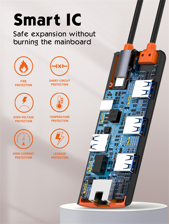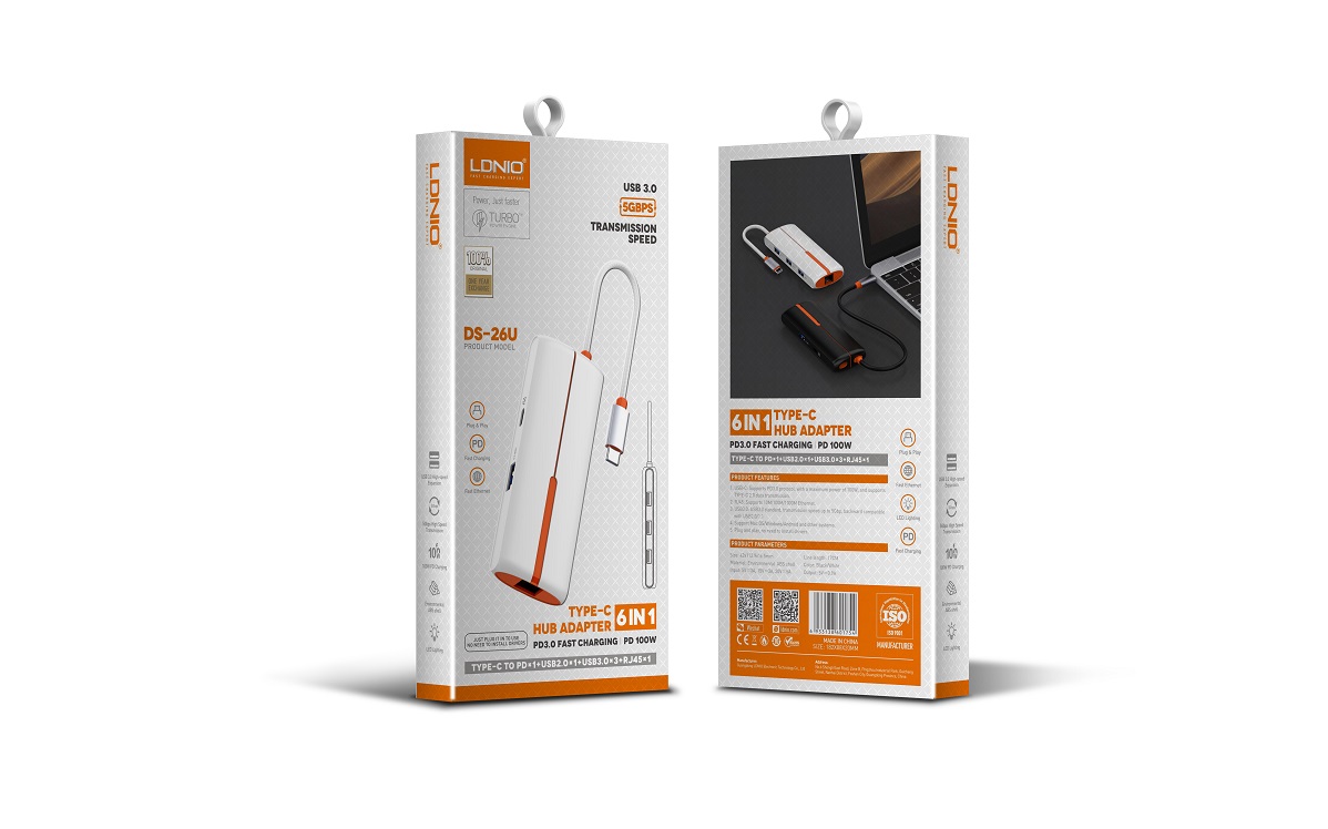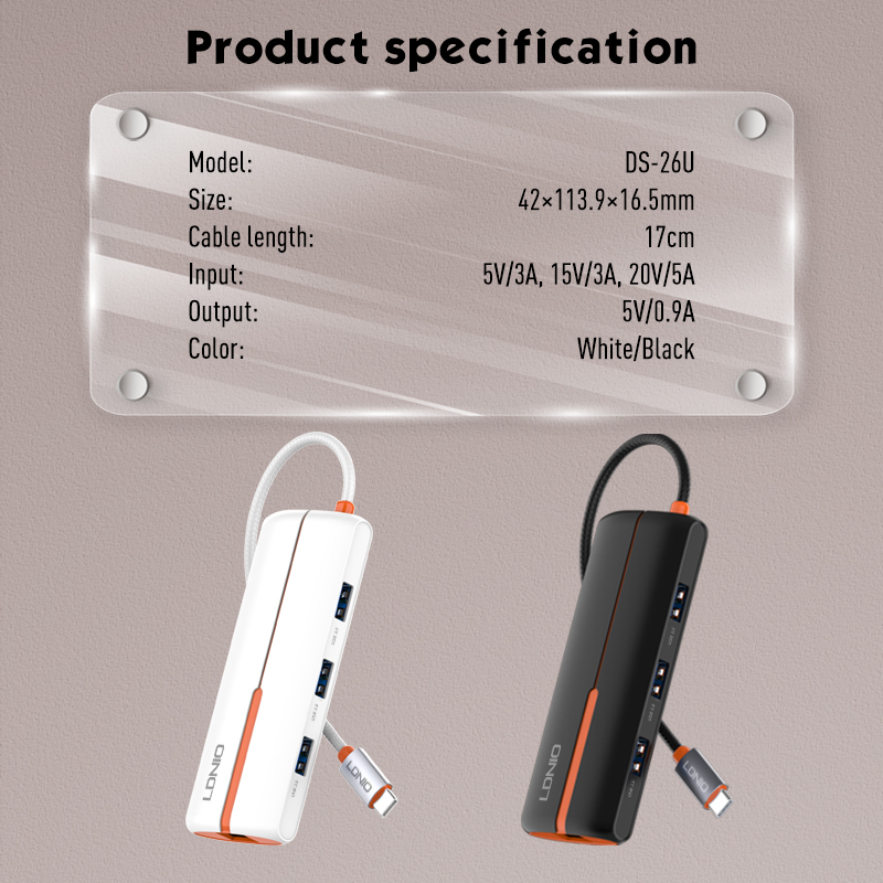 USB-C*1+USB2.0*1+USB3.0*3+RJ45*1 برای تمام نیازهای تبدیل داده شما.