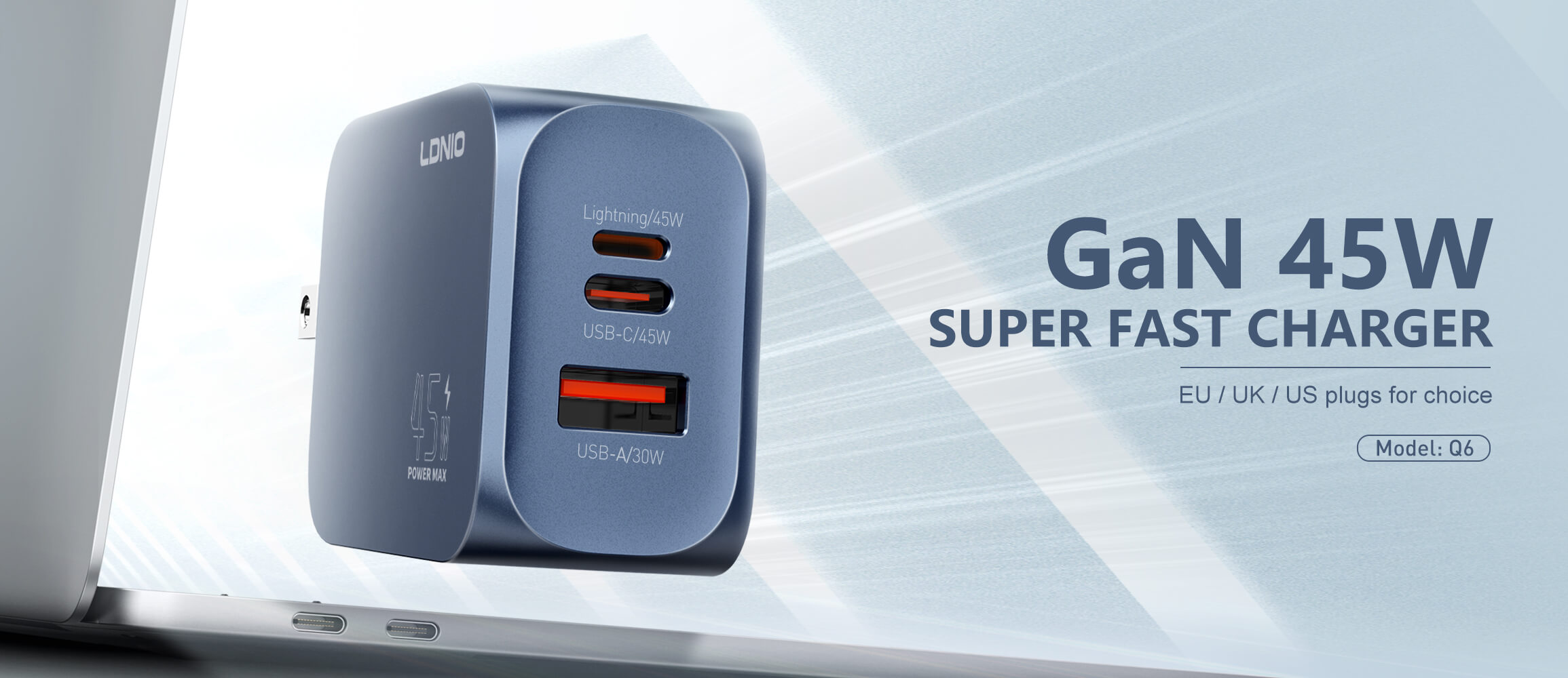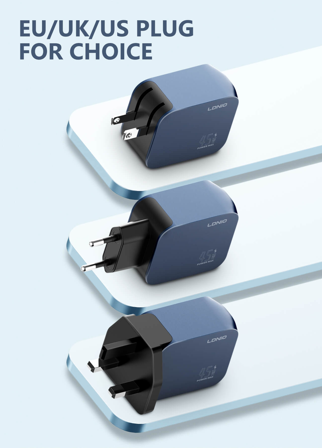 شارژر سریع قابل حمل Q6 45W جدید LDNIO با آداپتور شارژ سریع USB-C/A، شارژر مسافرتی با دوشاخهی مخصوص بریتانیا/اتحادیه اروپا/ایالات متحده
