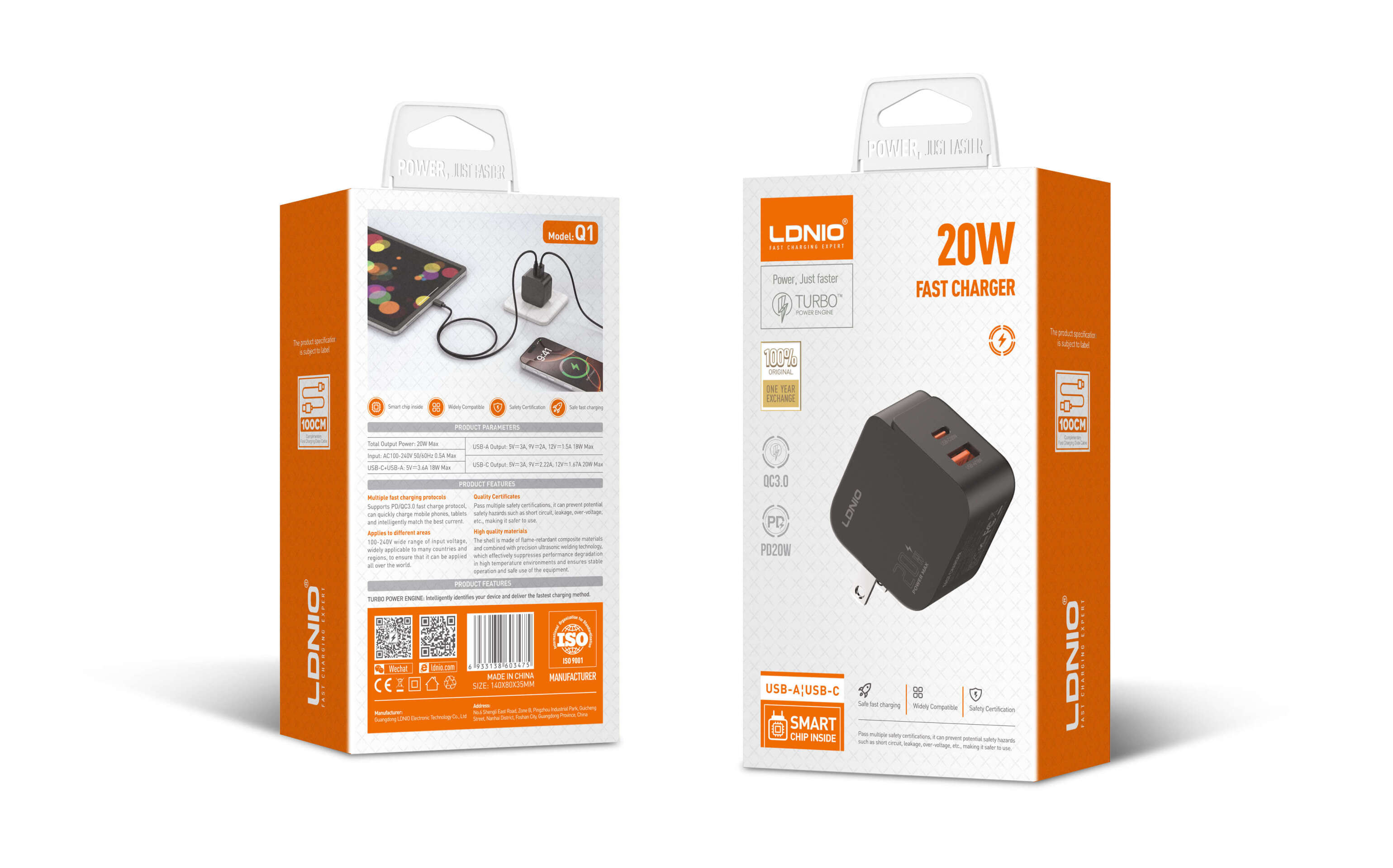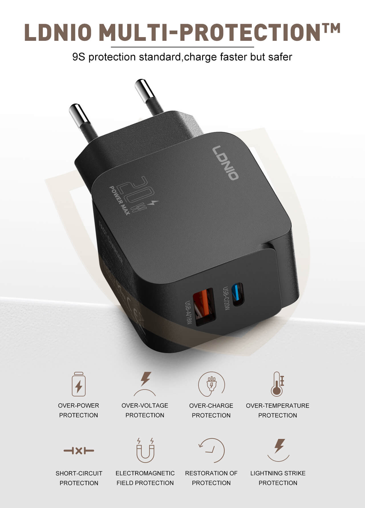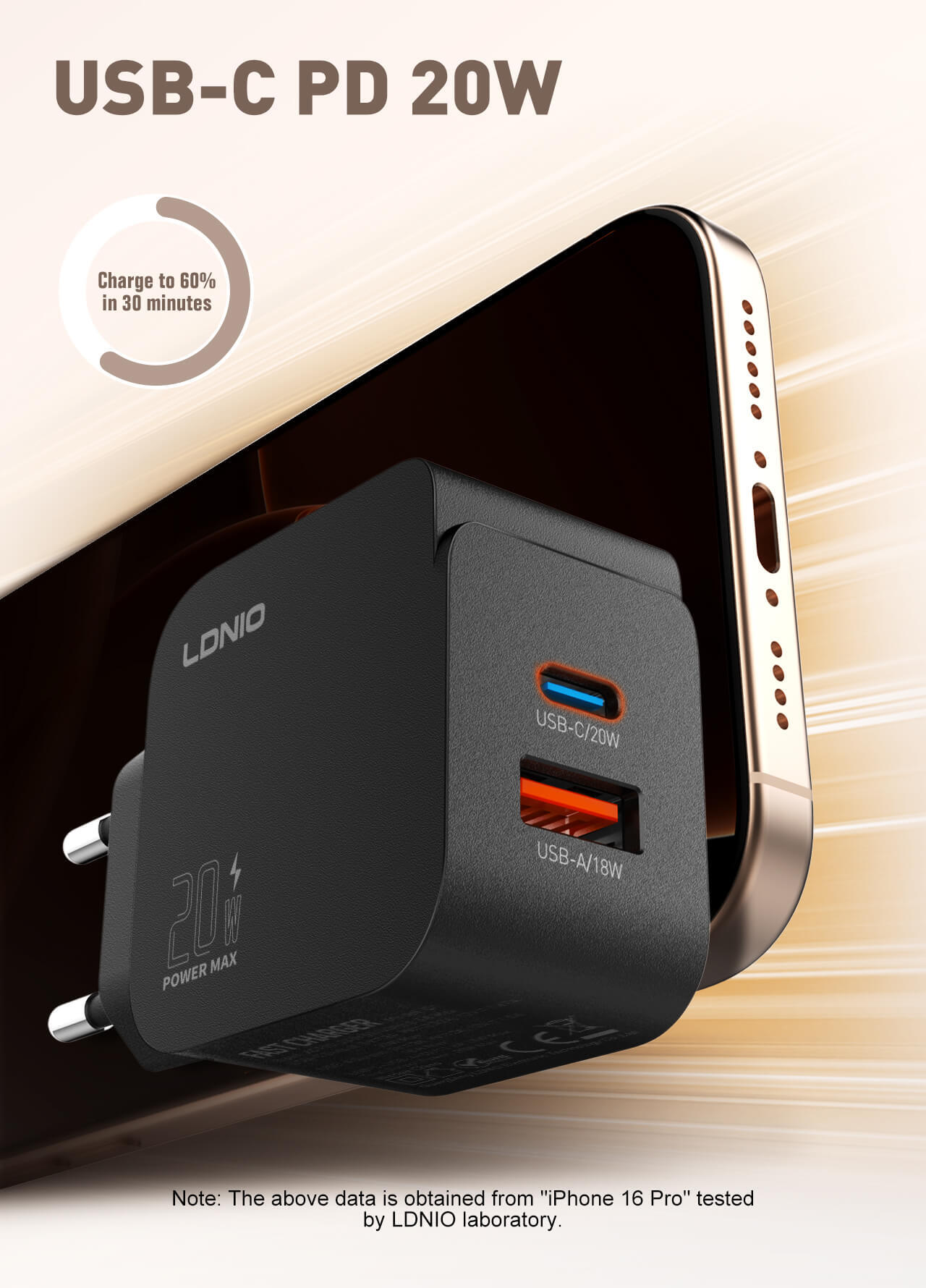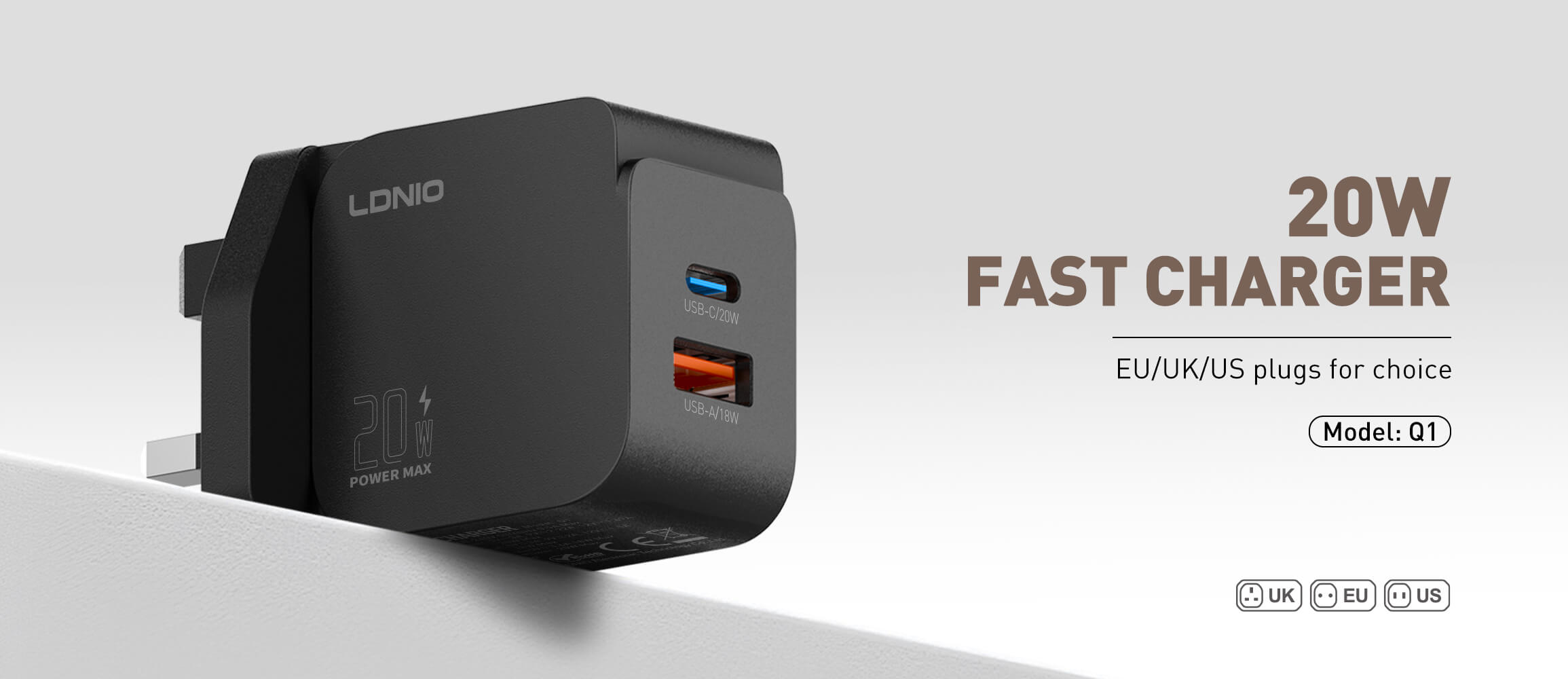 شارژ سریع ۲۰ واتی USB-C/A.