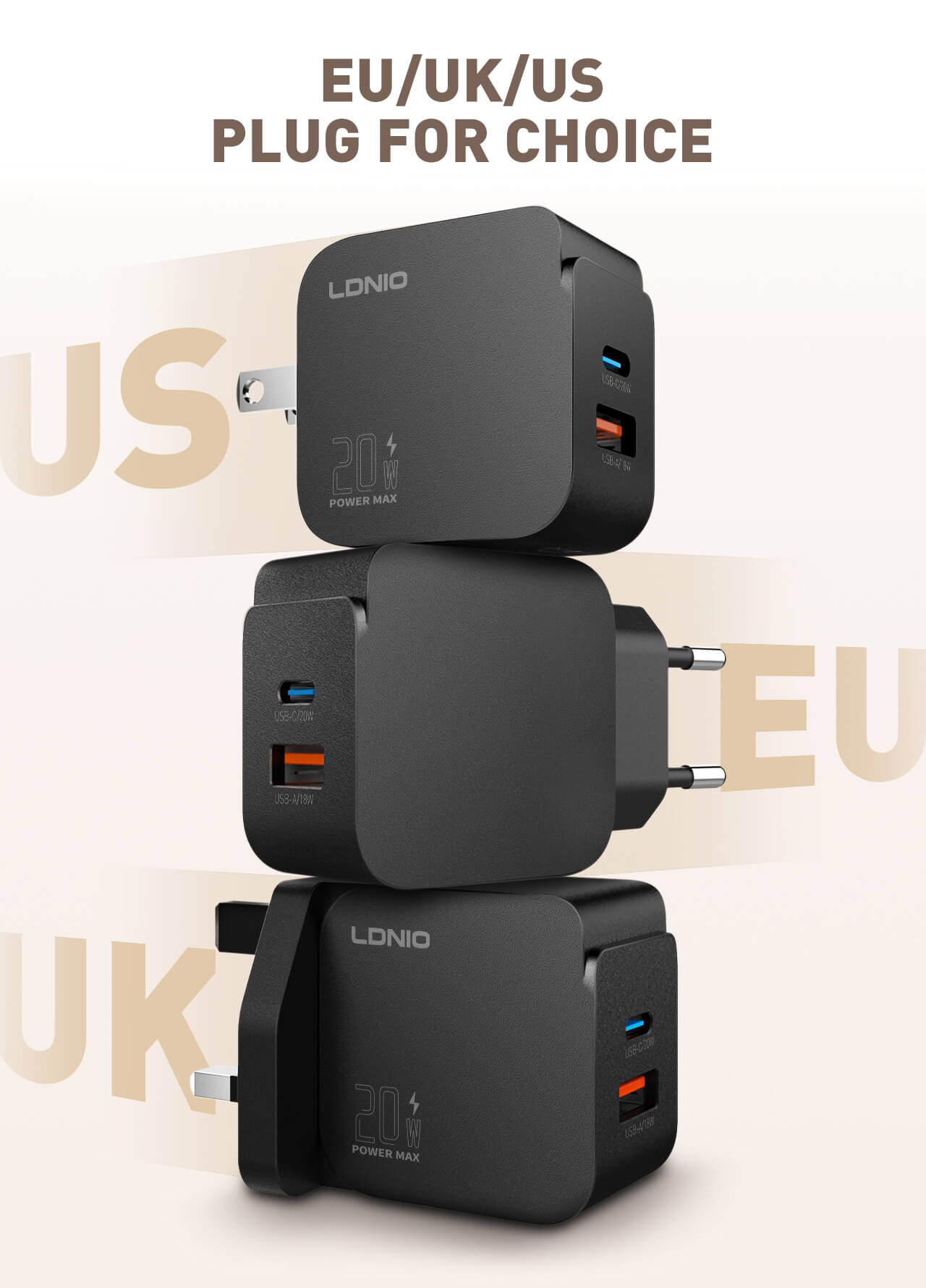 سه طرح مختلف دوشاخه، حق انتخاب را فراهم می‌کند.