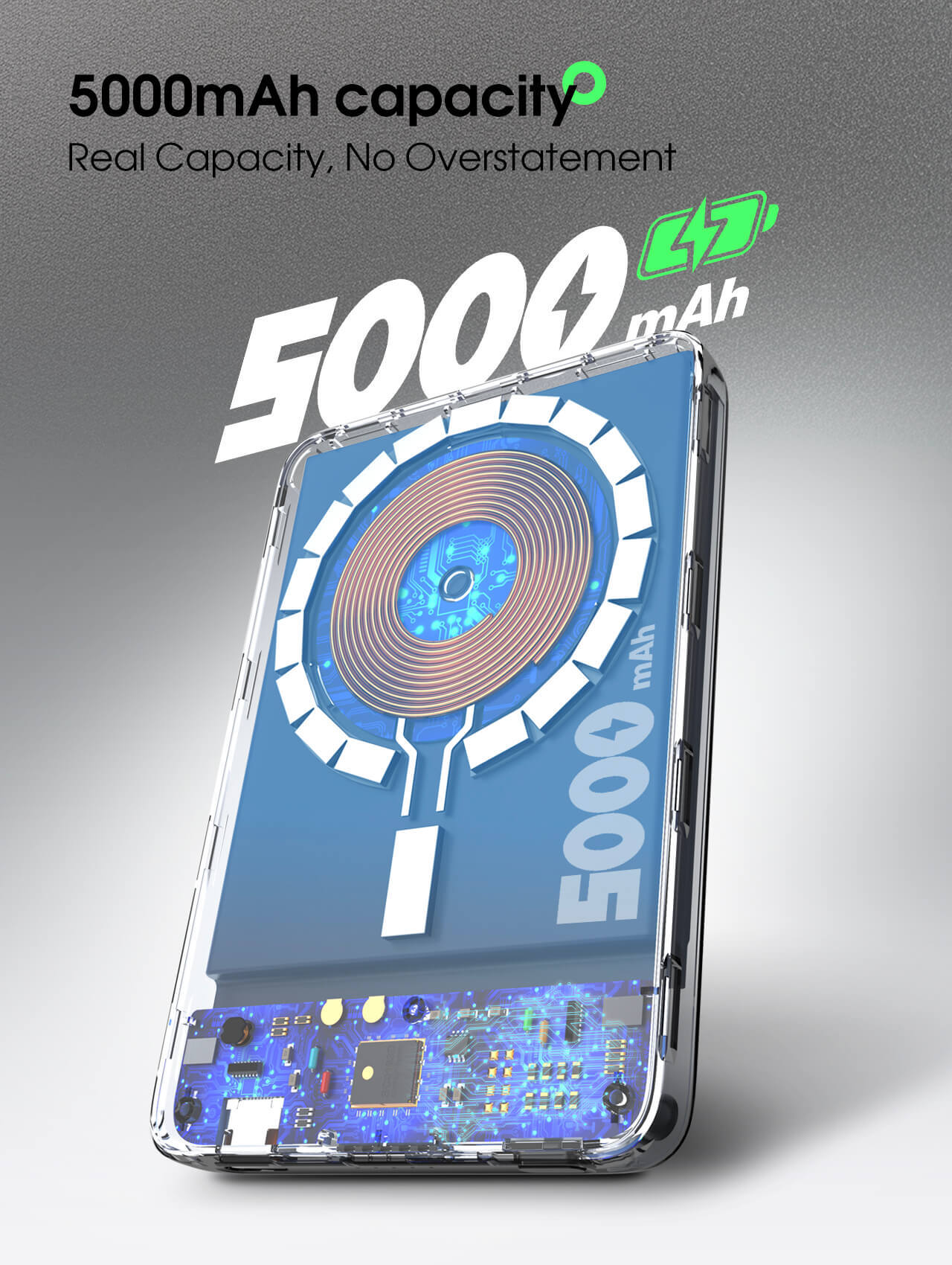 شارژر بیسیم سریع فوق سبک ۵۰۰۰ میلیآمپرساعت ۱۵ واتی PQ28